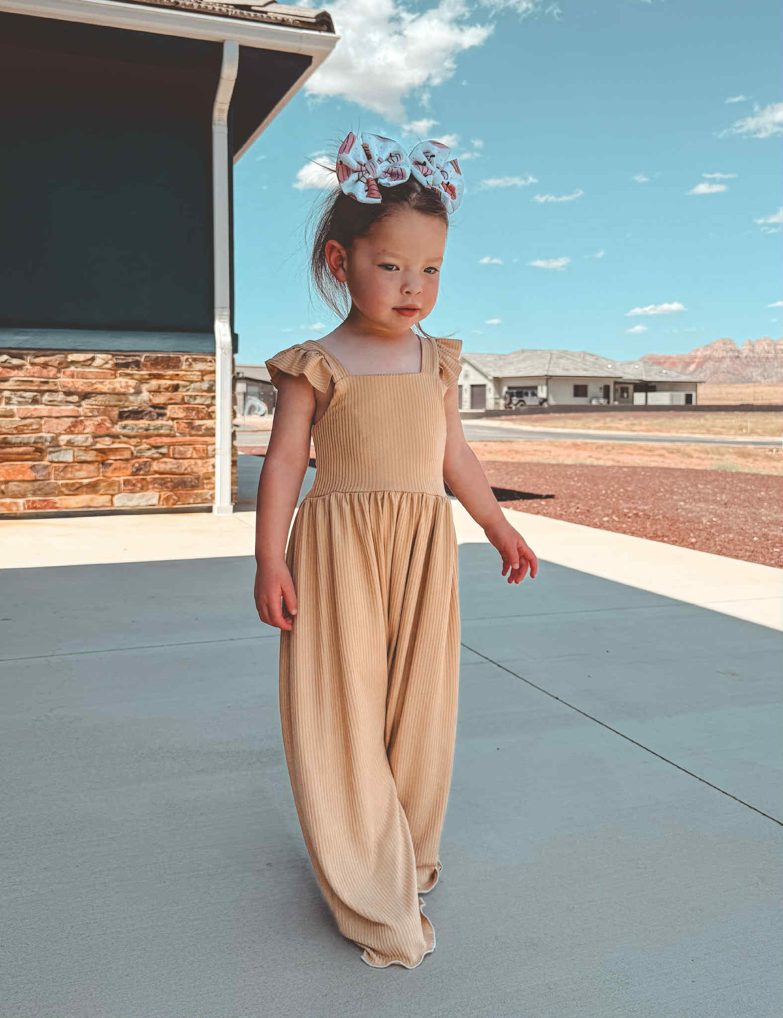 Our Natalia romper comes without the shoulder ruffle.